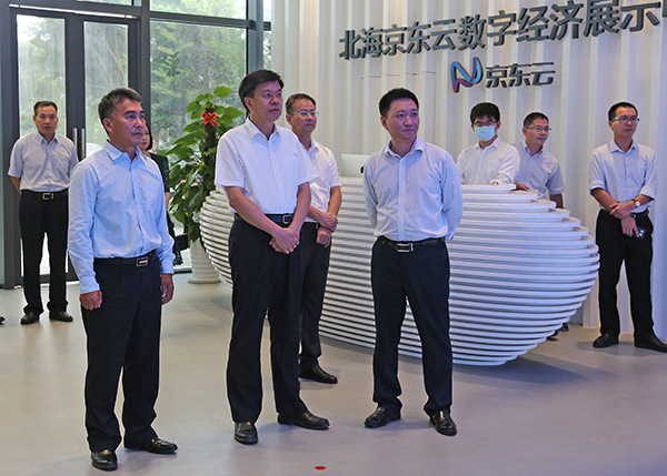 2020年6月11日下午,北海市委書(shū)記王乃學(xué)同欽州市委書(shū)記許永錁?biāo)暑I(lǐng)的欽州市黨政代表團(tuán)到中國(guó)電子北部灣信息港調(diào)研,參觀了北海京東云數(shù)字經(jīng)濟(jì)展示中心、京東網(wǎng)紅直播基地,聽(tīng)取企業(yè)負(fù)責(zé)人介紹生產(chǎn)經(jīng)營(yíng)等方面的情況。